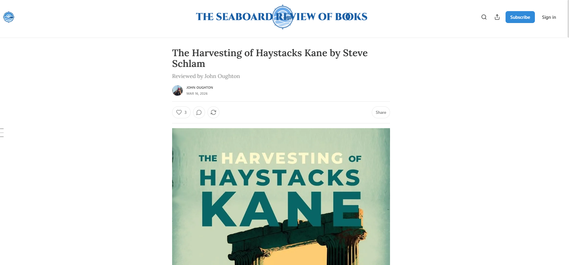 The Seaboard Review Praises Steve Schlam's The Harvesting of Haystacks Kane