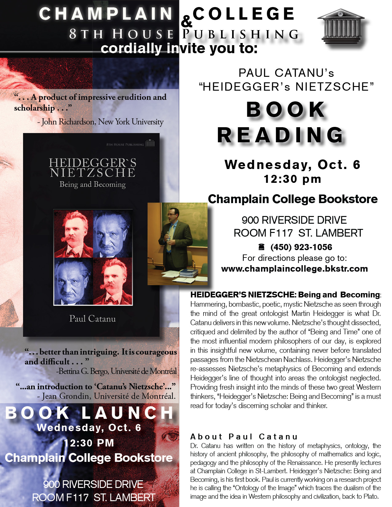 Video of the launch of "Heidegger's Nietzsche: Being and Becoming" at Olivieri's Bookstore in Montreal - Watch for Part II - Coming Soon!